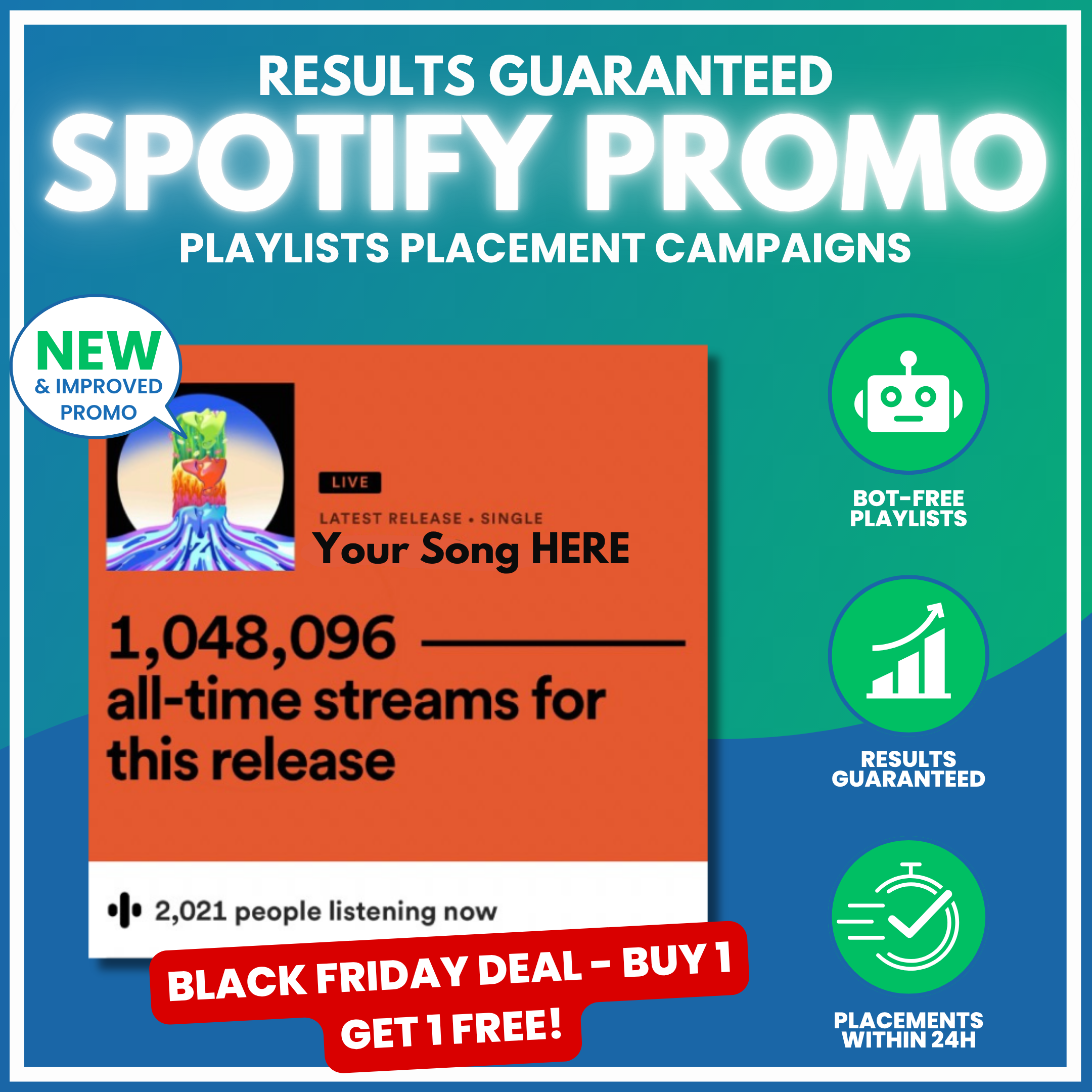 Spotify Domination Campaign: Guaranteed Placement into up to 6 verified organic playlists – Real listeners in 24 hours – No bots